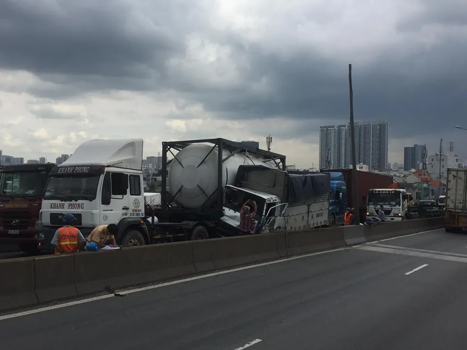Một lúc sau, chiếc xe bồn chở xăng và 1 xe container cũng va chạm cách hiện trường này khoảng 100m. Ngoài ra, ở hướng ngược lại, từ quận 2 sang quận 7, lại tiếp tục xảy ra va chạm giữa xe bồn và ô tô 4 chỗ.