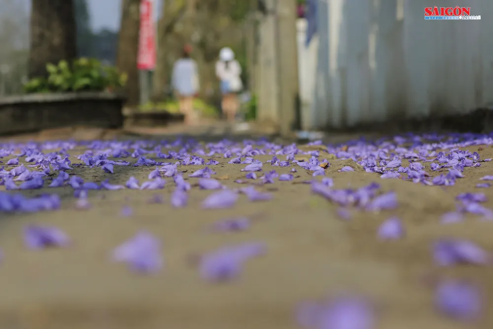 Phượng tím kết lại thành chùm nở dọc các triền dốc, con phố, cánh hoa rơi vương đầy những lối nhỏ dẫn vào những ngôi nhà lặng yên càng trở nên quyến rũ hơn.
