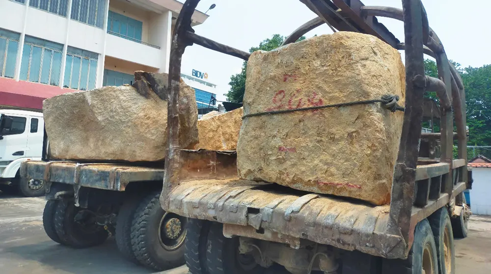 Theo đó, khoảng 23 giờ ngày 21-4, trong lúc tuần tra tại chân núi Hòn Chà (thuộc địa bàn phường Trần Quang Diệu), lực lượng trinh sát phát hiện 2 xe tải không gắn biển số đang vận chuyển các khối đá lớn từ trên núi xuống.