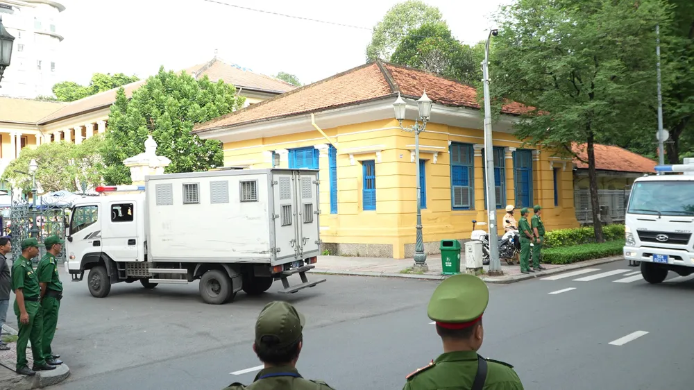 Ngay từ sáng sớm, an ninh tại khu vực TAND TPHCM đã được thắt chặt. Lực lượng chức năng kiểm soát an ninh cả trong phòng xử án và khu vực bên ngoài phòng xét xử.