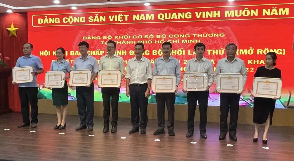 15 tổ chức cơ sở Đảng và 19 đảng viên thuộc Đảng bộ Khối cũng được nhận giấy khen của Ban Thường vụ Đảng ủy Khối cơ sở Bộ Công thương tại TPHCM do có thành tích xuất sắc trong công tác lãnh đạo, chỉ đạo, tham gia lực lượng chống dịch tại tuyến đầu trong công tác phòng chống dịch Covid-19.