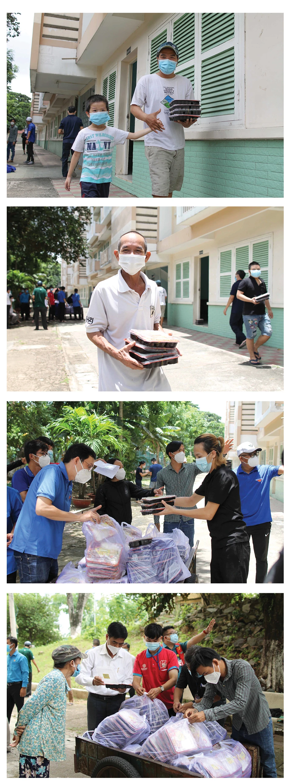 - Đồng chí NGUYỄN HỮU HIỆP: Khi gặp người dân, tôi rất vui khi người dân sinh sống trong những căn hộ, căn phòng ở Chung cư 1050 Chu Văn An và Nhà nghỉ Công đoàn Thanh Đa (quận Bình Thạnh), đã có cuộc sống mới tươm tất hơn. Nơi ở rộng rãi, sạch sẽ, thoáng mát, có bếp nấu ăn, có khuôn viên thư thái. Người dân có 22 ngày sinh sống trong đó và không phải lo trả tiền nhà, tiền phòng, tiền điện, tiền nước. Hai ngày đầu tiên, người dân được tặng cơm nước đầy đủ. Từ ngày thứ ba, các hộ dân tự nấu nướng bằng các vật dụng mang theo. Xe bán hàng lưu động được tổ chức ngay tại chung cư, nhà nghỉ để phục vụ nhu cầu đi chợ của dân…