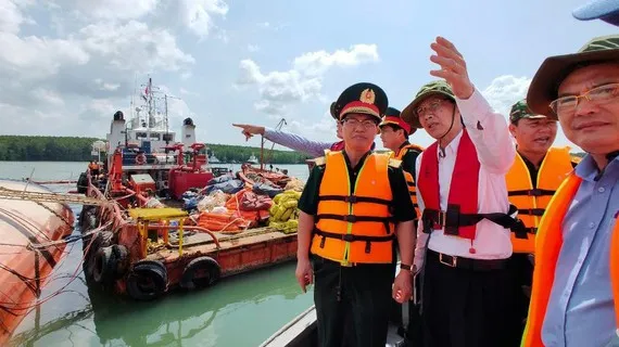 Phó Chủ tịch Thường trực UBND TPHCM Lê Thanh Liêm (thứ hai từ trái sang) đi kiểm tra thực tế