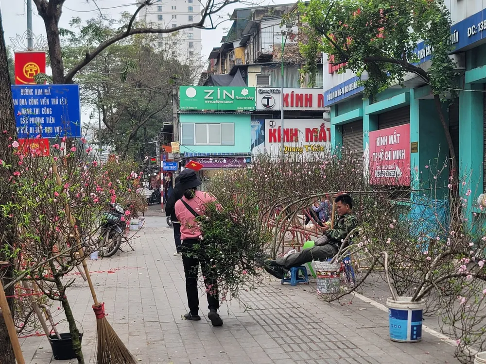 Tại một số khu vực bán hoa tết trên các đường, phố: Lê Văn Lương, Giảng Võ, Tố Hữu, Lạc Long Quân... có đào, quất cảnh và nhiều loại hoa khác tràn ngập nhưng lượng người mua khá ít. Một số tiểu thương cho biết, hoa đào năm nay khá đẹp và phần lớn là đào cành dáng huyền với chiều cao từ 2-3 mét nhưng giá bán chỉ 300.000-500.000 đồng/cành, thậm chí có cành còn chưa tới 200.000 đồng, rẻ hơn 1/2 - 1/3 lần so với tết năm ngoái nhưng vẫn ít người mua.