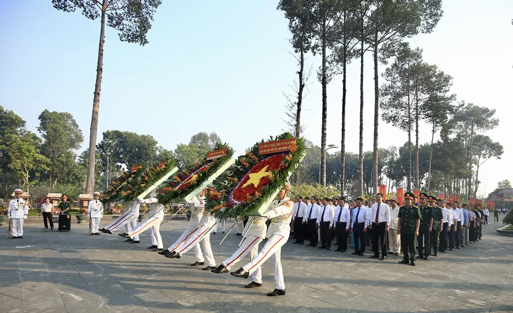 Tại đây, các đại biểu đã dành phút mặc niệm thành kính tưởng nhớ công ơn to lớn của đồng bào, chiến sĩ đã chiến đấu kiên cường, anh dũng hy sinh trên vùng đất Sài Gòn - Chợ Lớn - Gia Định trong hai cuộc kháng chiến giải phóng dân tộc; nguyện tiếp tục cống hiến, chung sức, đồng lòng xây dựng TPHCM ngày càng văn minh, hiện đại, nghĩa tình.