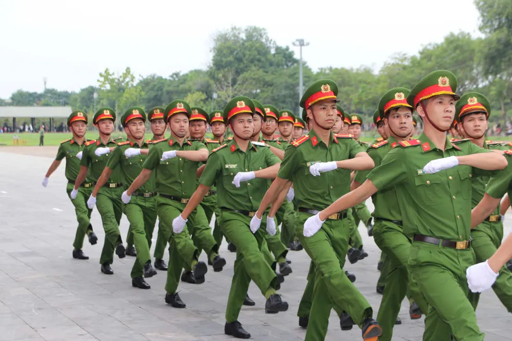 Các đơn vị nghiệp vụ của lực lượng công an trình diễn mô tô, ô tô dẫn đoàn, biểu diễn quân nhạc, điều lệnh Công an nhân dân.