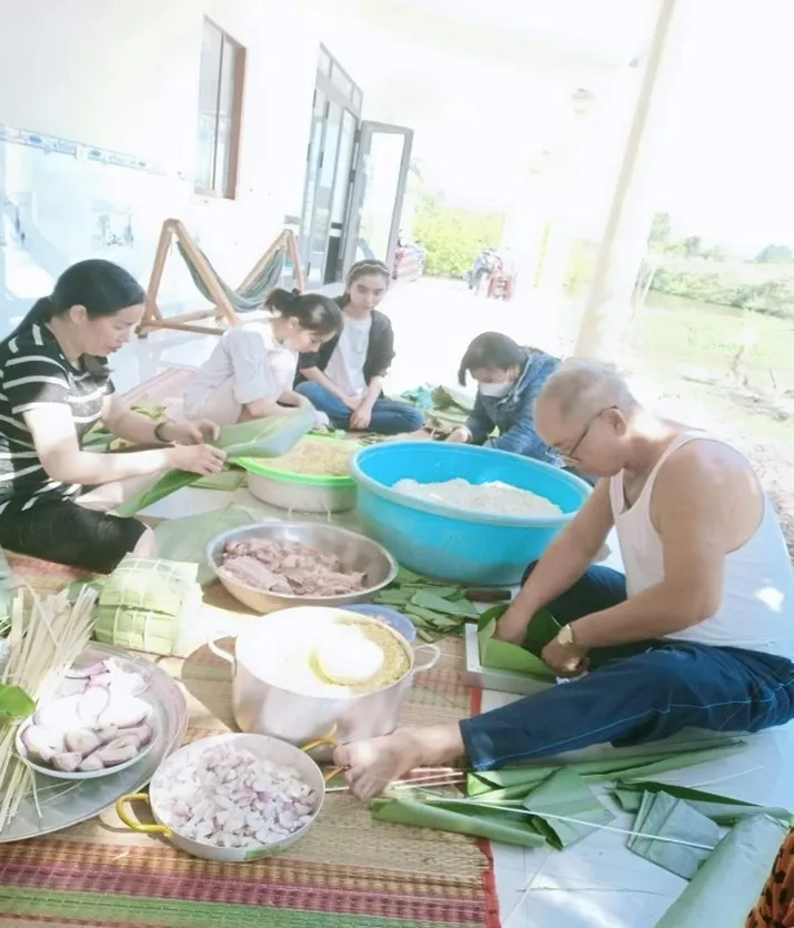 Nhà nào cũng trồng sẵn trong vườn vài bụi dong lá, cấy ít lúa nếp để dành. Nói là giết heo ăn tết nhưng thật ra mấy nhà mới chung nhau giết một con để chia mỗi người vài cân. Hai, ba nhà chung nhau một nồi bánh chưng, vì chẳng nhà nào có khả năng gói nhiều. Cứ đến khoảng từ 26 đến 29 tết là cả xóm lại nhộn nhịp. Kẻ cắt lá dong, người xay đậu, anh này đi bổ củi, chị nọ vặn nùn rơm, gọi nhau í ới.