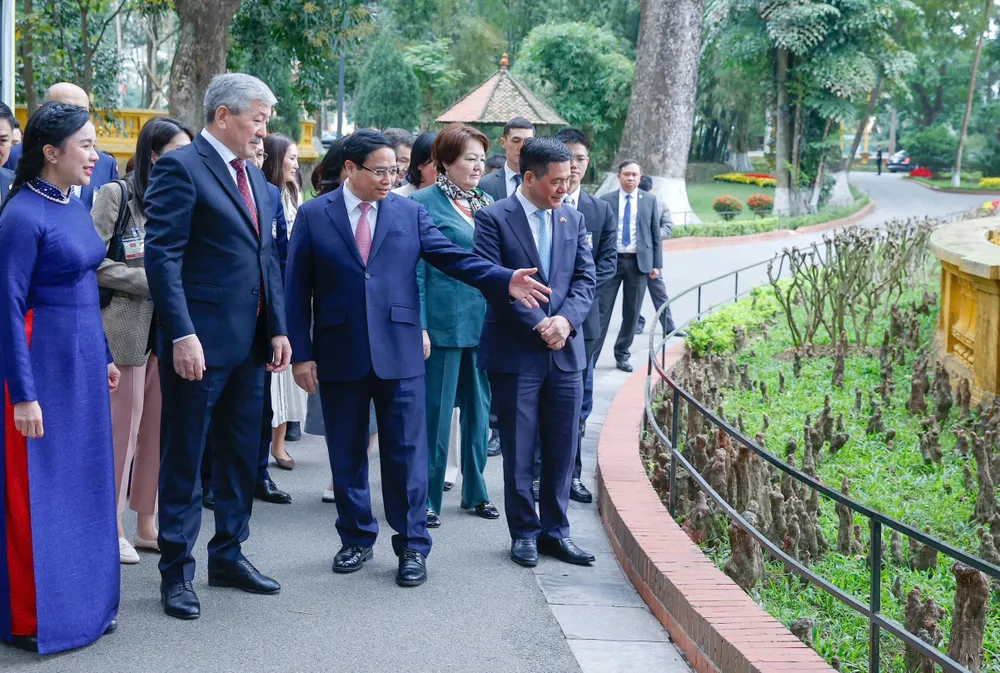 Cùng thăm Khu Di tích Chủ tịch Hồ Chí Minh tại Phủ Chủ tịch, là di tích quốc gia đặc biệt, Thủ tướng Phạm Minh Chính đã giới thiệu với Thủ tướng Adylbek Kasymaliev về Nhà sàn Bác Hồ, cùng cuộc đời và sự nghiệp của Chủ tịch Hồ Chí Minh vĩ đại, Anh hùng giải phóng dân tộc, Danh nhân văn hóa thế giới.