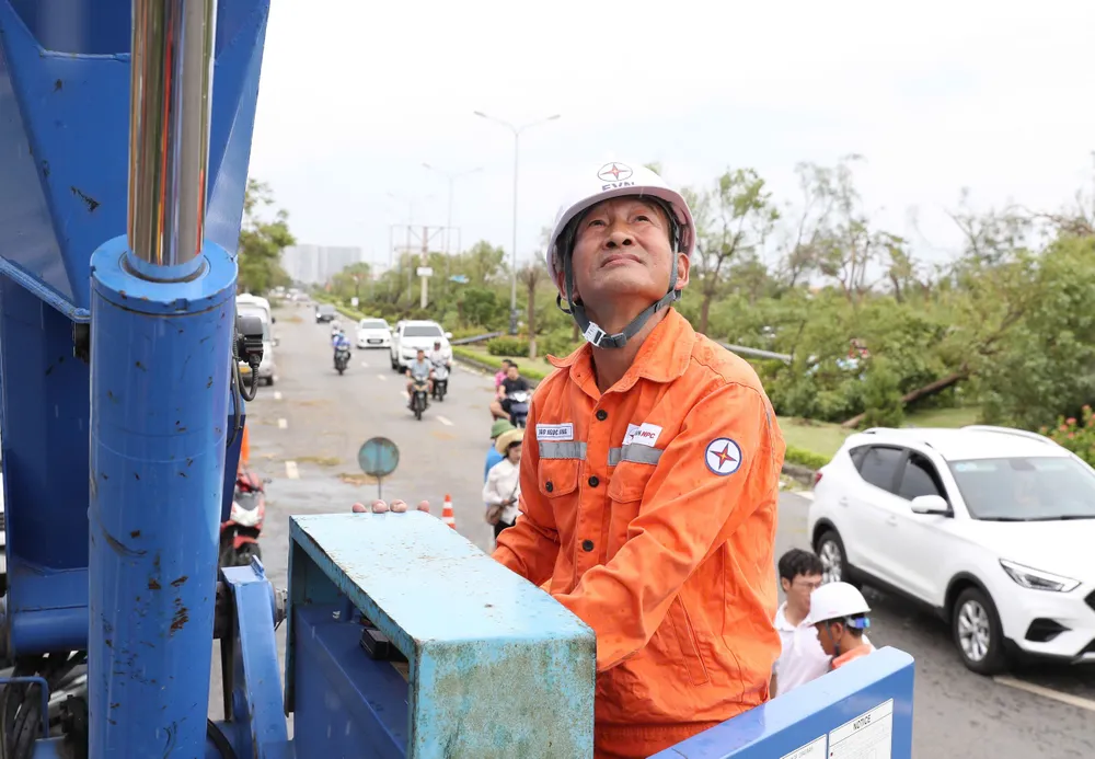 Anh Nguyễn Trần Hoành, một nhân viên thuộc Điện lực Dương Kinh (TP Hải Phòng) cho biết, từ sáng sớm, các đơn vị điện lực đã phân công các tổ đội, tỏa ra khắp địa bàn quận Dương Kinh để khắc phục lưới điện.