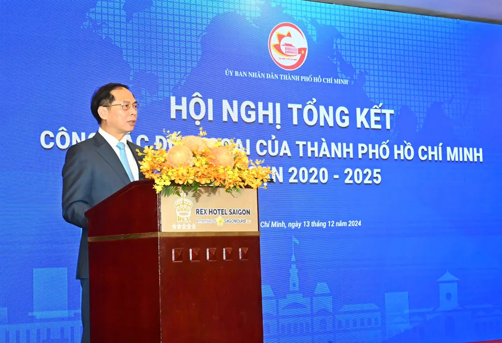 Sáng 13-12, UBND TPHCM đã tổ chức Hội nghị tổng kết 5 năm triển khai công tác đối ngoại của TPHCM giai đoạn 2020 – 2025. Tham dự hội nghị có đồng chí Bùi Thanh Sơn, Ủy viên Trung ương Đảng, Phó Thủ tướng, Bộ trưởng Bộ Ngoại giao; đồng chí Phan Văn Mãi, Chủ tịch UBND TPHCM; lãnh đạo các bộ, ban ngành Trung ương; lãnh đạo sở, ngành TPHCM; gần 200 đại biểu là các cơ quan đoàn thể, lãnh sự, doanh nghiệp, báo chí…