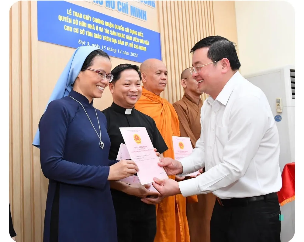 Như vậy, tính từ đầu năm 2023 đến nay có 48 cơ sở tôn giáo trên địa bàn TPHCM được cấp Giấy Chứng nhận. Tuy con số chưa nhiều, nhưng đây là nỗ lực tích cực của Sở TNMT TPHCM và các cơ quan có liên quan trong công tác này. Được biết, Sở TNMT TPHCM vừa tiếp tục trình UBND Thành phố nhiều hồ sơ đủ điều kiện để xem xét cấp Giấy chứng nhận trong thời gian tới. Như vậy, từ năm 2008 đến nay, TPHCM đã xem xét, cấp được hơn 950 giấy chứng nhận cho các tổ chức tôn giáo, với diện tích hơn 2,5 triệu m2. Theo thống kê của Ban Tôn giáo Thành phố (trên cơ sở đăng ký của các cơ sở tôn giáo) thì còn lại 2.020 cơ sở tôn giáo chưa được cấp giấy chứng nhận, với diện tích hơn 1 triệu m2.
