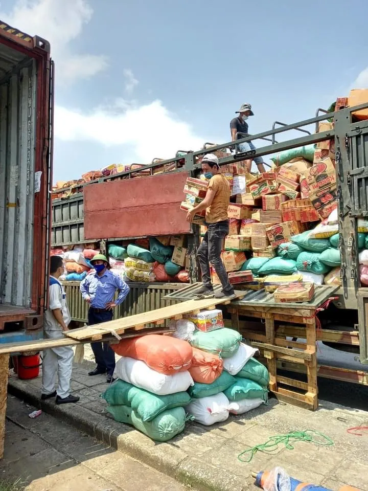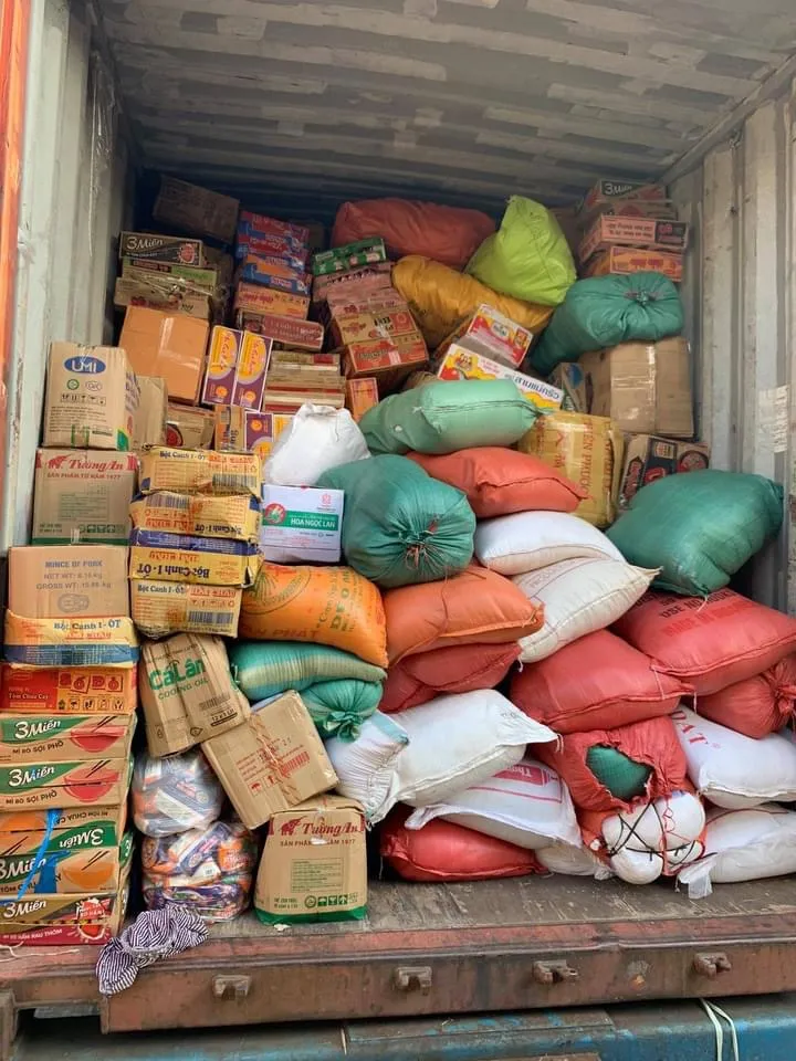 Đêm qua 25-8, lô nông sản, hàng hóa hỗ trợ (gồm gạo, mì tôm, súp, dầu ăn, nước mắm, bột ngọt, hạt nêm, bún miến, bí xanh, bí đỏ, đu đủ, su su, khoai tây, măng khô và lạc…) đã được trung chuyển từ tỉnh Sơn La, tập kết về Hà Nội bằng xe ô tô, sau đó đưa lên tàu hỏa để vận chuyển vào TPHCM.