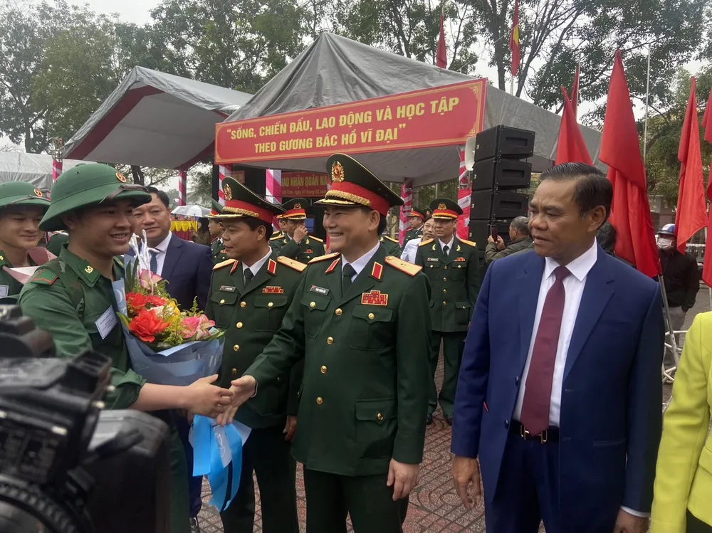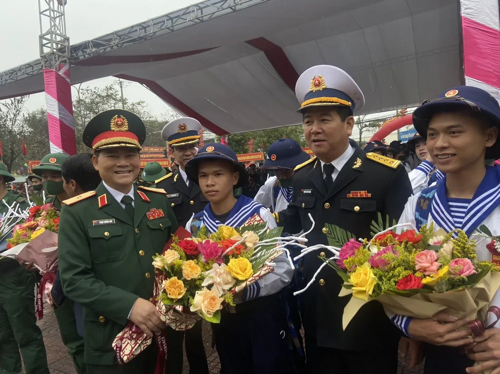 Thiếu tướng Phạm Trường Sơn, Phó Tổng tham mưu trưởng Quân đội nhân dân Việt Nam, lãnh đạo Bộ Tư lệnh Quân khu 4 và tỉnh Hà Tĩnh tiễn thanh niên lên đường nhập ngũ |