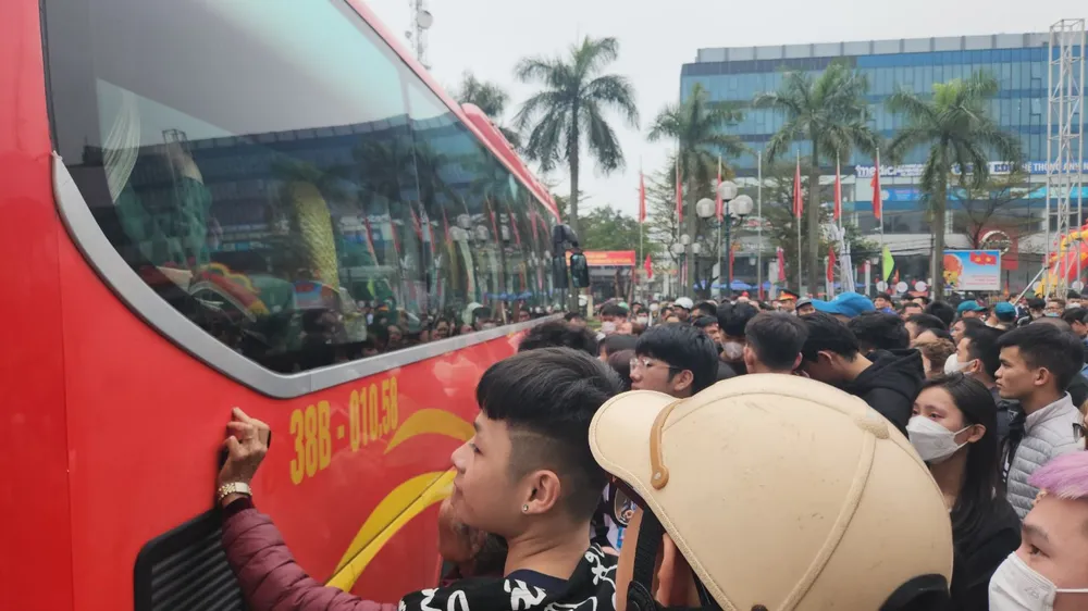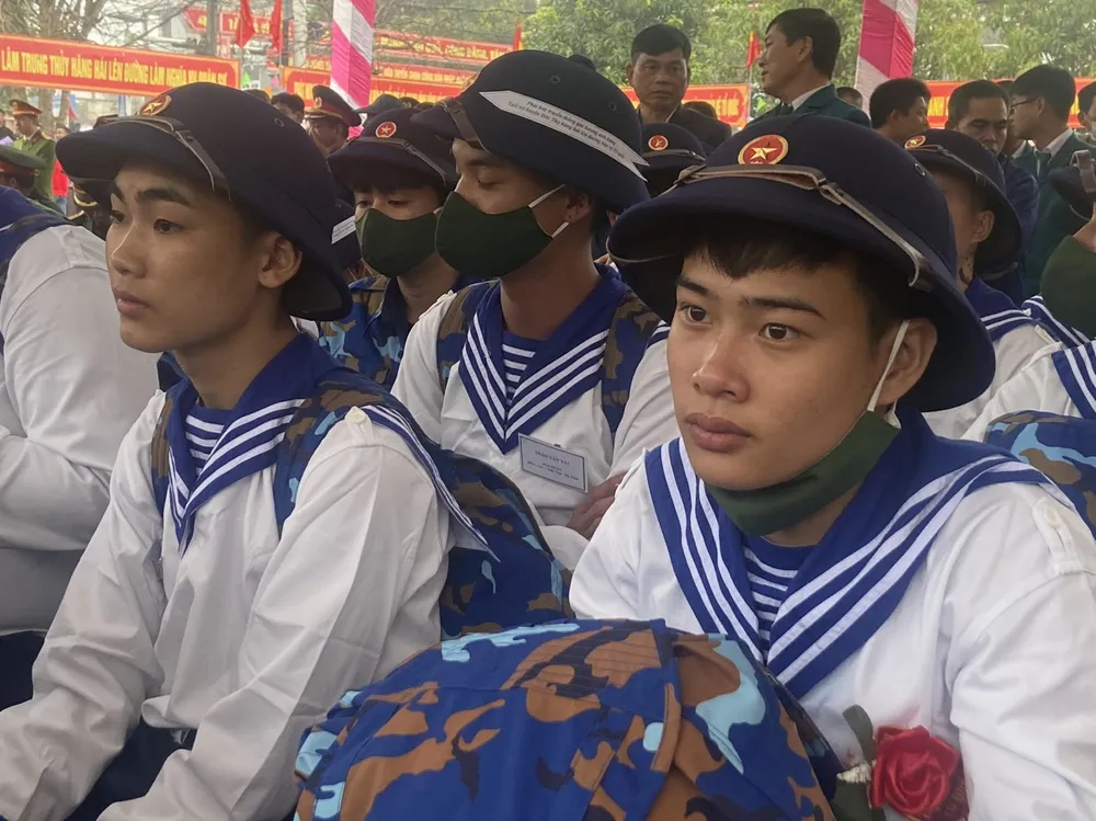 Các tân binh tại lễ giao nhận quân năm 2023 tại huyện Đức Thọ, Hà Tĩnh |
