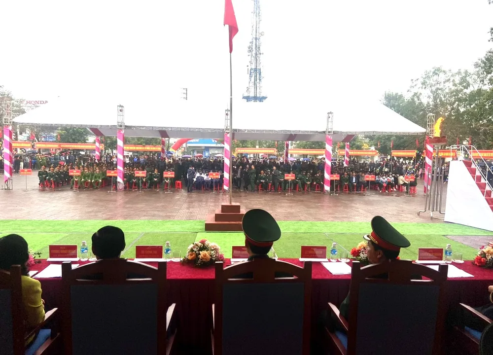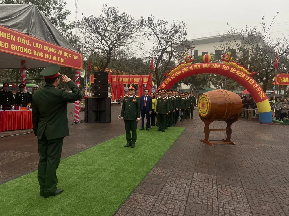 Thiếu tướng Phạm Trường Sơn, Phó Tổng tham mưu trưởng Quân đội nhân dân Việt Nam; lãnh đạo Bộ Tư lệnh Quân khu 4, lãnh đạo tỉnh Hà Tĩnh tới dự lễ, chỉ đạo và tặng hoa chúc mừng, tiễn các thanh niên lên đường thực hiện nghĩa vụ quân sự tại huyện Đức Thọ.