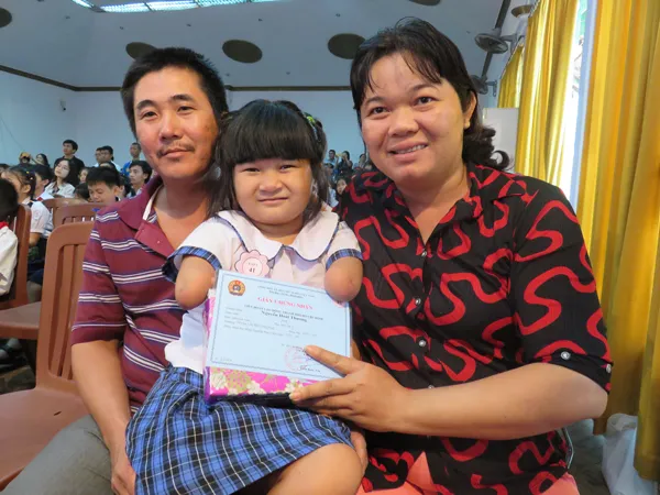 Niềm vui của gia đình em Nguyễn Hoài Thương khi nhận học bổng Nguyễn Đức Cảnh