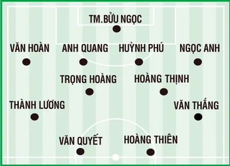 U23 Việt Nam dập lửa Bung Karno bằng cách nào? Mất Long Giang vì án treo giò, Huỳnh Phú sẽ thế chỗ. Hàng thủ U23 Việt Nam cũng được gia cố bằng Ngọc Anh bên cánh trái, bởi đây là trận cầu của những cầu thủ kinh nghiệm. Ở tuyến giữa, Hoàng Thịnh trở lại, trấn thủ và trở thành mũi càn phòng ngự ngay trước hàng thủ. Trên hàng công, do Đình Tùng chưa lành lặn, có lẽ ông Goetz đành sử dụng cặp Văn Quyết - Hoàng Thiên.