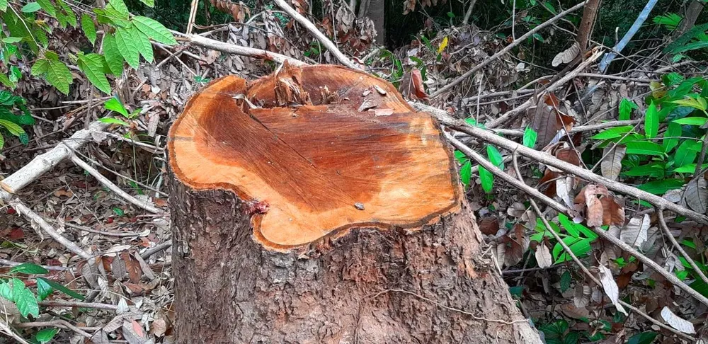 Một phần cây gỗ bị chặt hạ, còn ở hiện trường