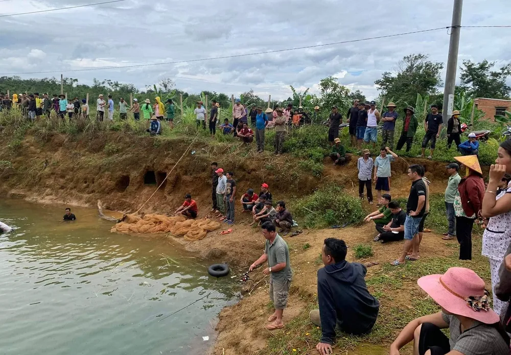 Trong lúc tìm kiếm tại hồ nước gần nhà, mọi người phát hiện quần áo và dép của hai cháu D. và L. để lại trên bờ hồ. Lúc này, người dân và lực lượng chức năng đã lặn xuống hồ mò tìm và trục vớt được thi thể các em.