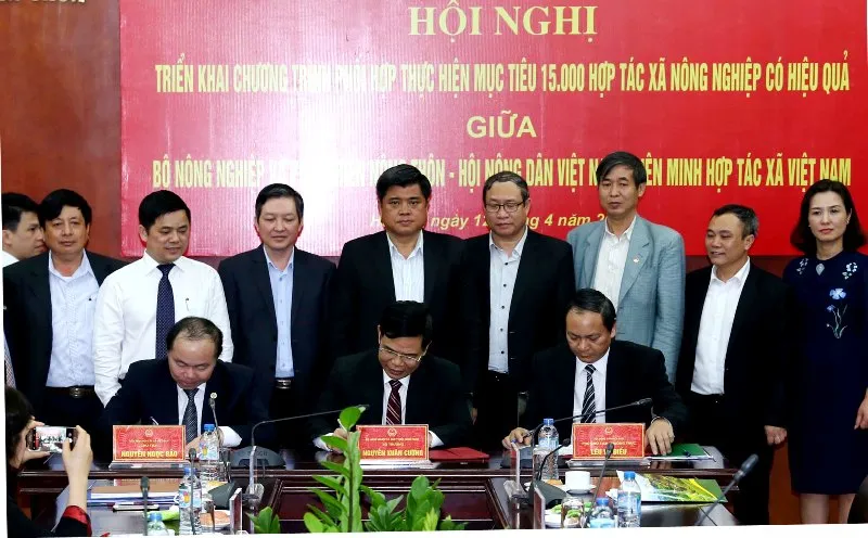 Tại hội nghị, đại diện lãnh đạo Bộ NN-PTNT, Trung ương Hội Nông dân Việt Nam và Liên minh HTX Việt Nam đã cùng bắt tay ký kết chương trình phối hợp thực hiện mục tiêu đến năm 2020 phát triển 15.000 HTX và liên hiệp hợp tác xã kiểu mới trên cả nước theo chủ trương của Đảng, nghị quyết của Quốc hội và quyết định của Thủ tướng Chính phủ.