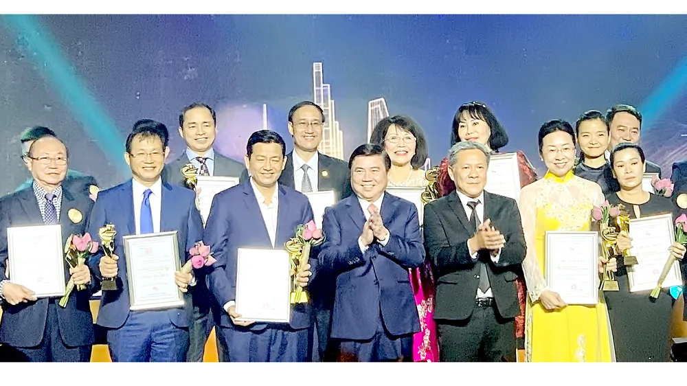 Chủ tịch UBND TPHCM Nguyễn Thành Phong trao giải thưởng Thương hiệu Vàng TPHCM năm 2020 cho các doanh nghiệp