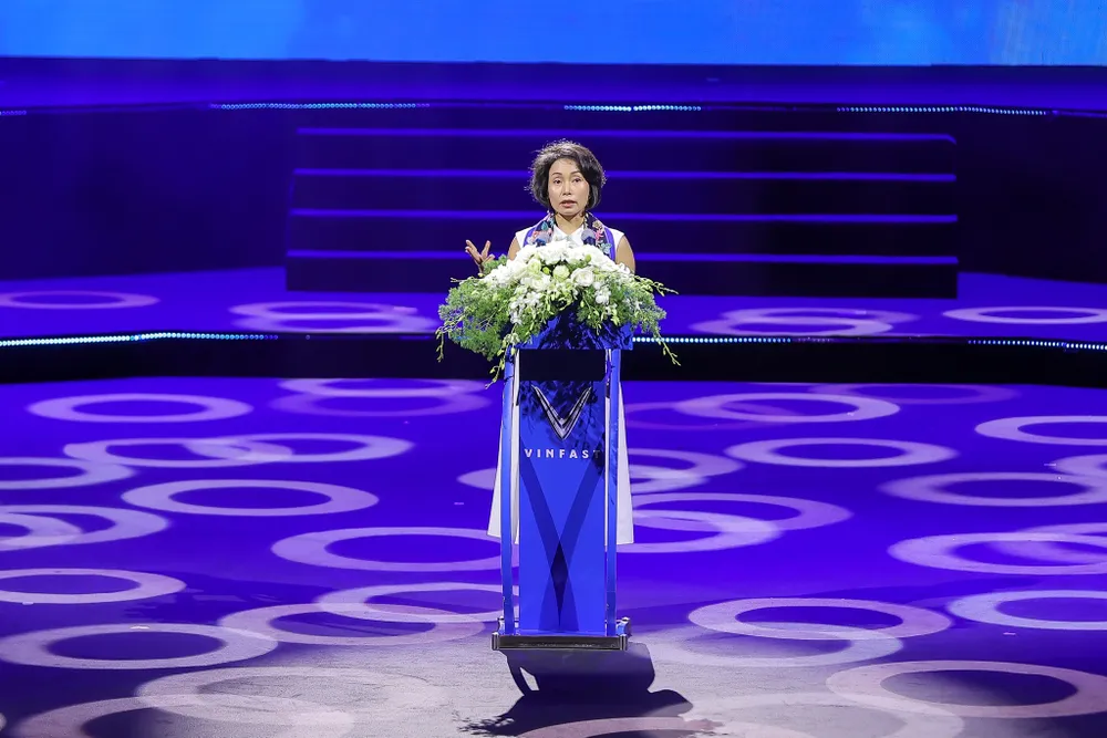 Bà Lê Thị Thu Thuỷ - Phó Chủ tịch Tập đoàn Vingroup kiêm Tổng giám đốc VinFast toàn cầu phát biểu công bố chính thức ra mắt cộng đồng VinFast toàn cầu