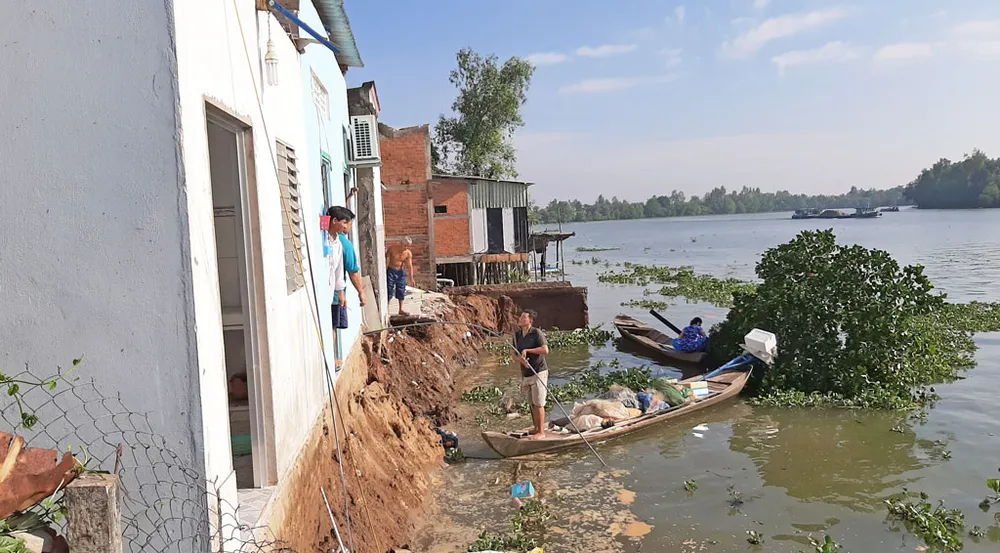 Khoảng gần 6 giờ sáng 27-5, trên địa bàn ấp Rạch Chanh, xã Lợi Bình Nhơn, thành phố Tân An (Long An), 4 căn nhà ở ven sông Vàm Cỏ Tây bất ngờ bị đổ ụp xuống sông. Bên cạnh đó, còn có 4 căn nhà gần đó tuy không bị thiệt hại, nhưng bị nhiều vết nứt lớn.