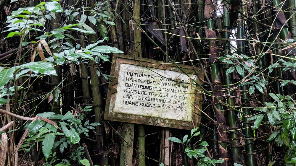 Nơi đầu tiên là bụi tre ngà ở xóm Vò Đuổn, xã Vĩnh Quang sát với xã Hưng Đạo, trên đường đi lên khu trại chăn nuôi heo mà khi xưa, các nạn nhân của cuộc thảm sát vốn là công nhân làm việc tại trại chăn nuôi này. Tuy nhiên, ở đây lại không có tấm bia nào, nhưng chúng tôi may mắn gặp được ông Hoàng Văn Phong (63 tuổi), nhà ở ngay đầu xóm, trên đường lên khu trại nuôi heo.
