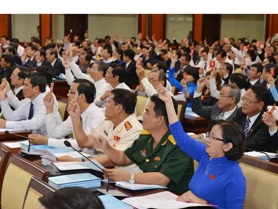 Các đại biểu biểu quyết thông qua chương trình Đại hội. Ảnh: VIỆT DŨNG