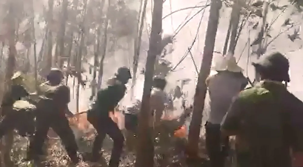 Lực lượng dân quân đang nỗ lực dập tắt đám cháy