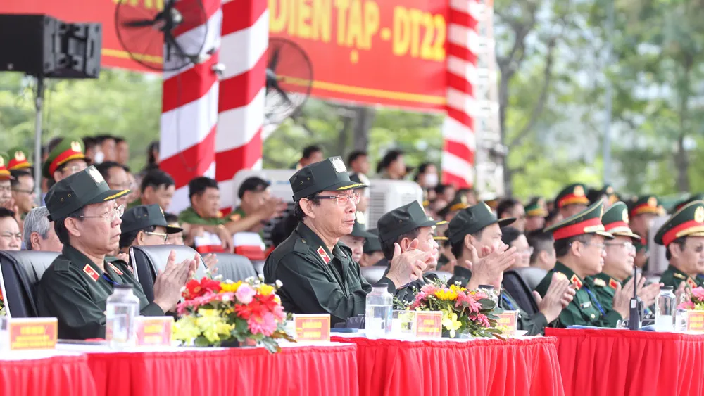 Các đồng chí Phó Trưởng Ban Chỉ đạo phòng chống khủng bố TPHCM, Phó Trưởng Ban Chỉ đạo diễn tập DT-22: Ngô Minh Châu, Phó Chủ tịch UBND TPHCM; Thiếu tướng Lê Hồng Nam, Giám đốc Công an TPHCM; Trung tướng Nguyễn Văn Nam, Tư Lệnh Bộ Tư lệnh TPHCM.