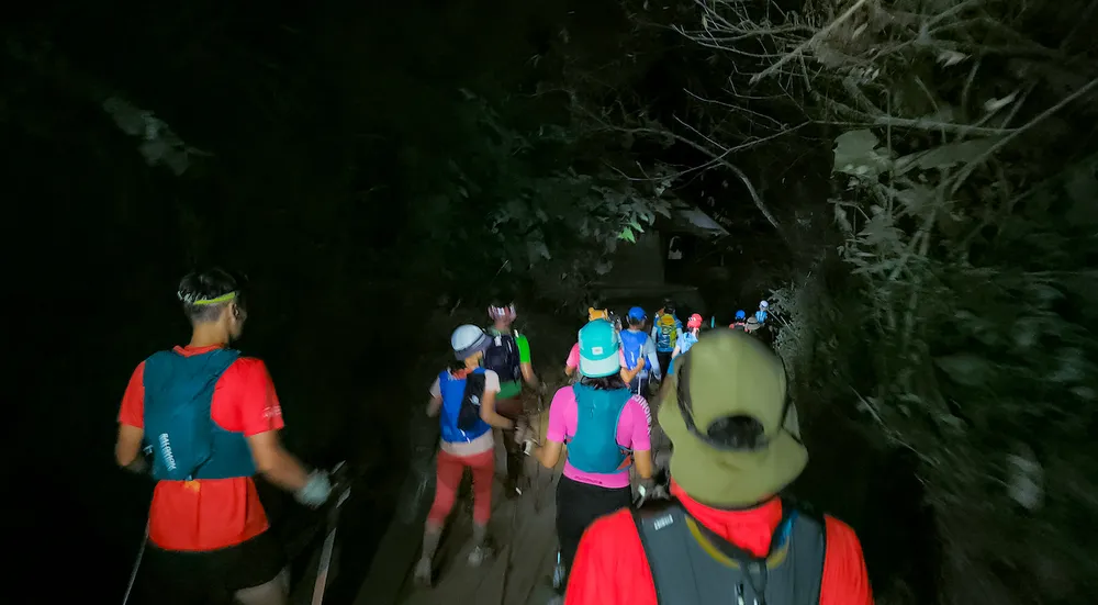 Khi còn đích đến chưa đầy 5km, tôi đã dùng chiếc Xiaomi 13T chụp bức hình cuối, lúc trời đã rất tối, rồi nhét chiếc điện thoại vào túi quần, cùng các vận động viên khác lao về đích trong đêm với niềm vui mình hoàn thành 50km.
