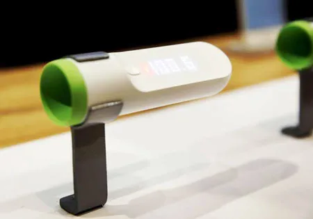 Withings Thermo là một nhiệt kế thông minh của công ty Y tế Kỹ thuật số của Pháp. Chiếc nhiệt kế thông minh này có thể đo nhiệt độ cơ thể bạn chỉ bằng 1 thao tác đơn giản là đặt nó lên thái dương, chỉ số nhiệt sẽ hiển thị trên thân máy sau khi các cảm biến hồng ngoại gắn trên đầu thiết bị đo xong. Ngoài ra Withings Thermo còn có thể nhận biết được từng thành viên khác nhau trong gia đình bạn khi đo và kèm theo đó một ứng dụng cho phép bạn theo dõi lịch sử những lần đo trước đó hay chia sẻ cho bác sỹ của gia đình. Withings Thermo có giá bán lên đến 1.000 USD.