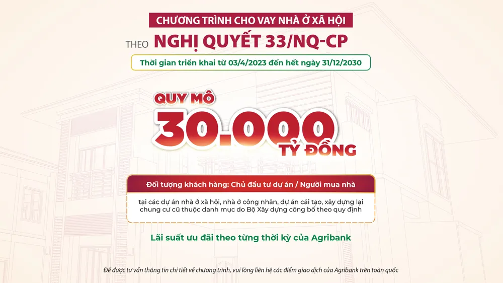 Lãi suất ưu đãi áp dụng đến hết ngày 30-6-2023 đối với chủ đầu tư là 8,7%/năm và đối với người mua nhà là 8,2%/năm. Kể từ ngày 1-7-2023, định kỳ 6 tháng/lần, Agribank sẽ thông báo lãi suất cho vay trong thời gian ưu đãi triển khai chương trình.
