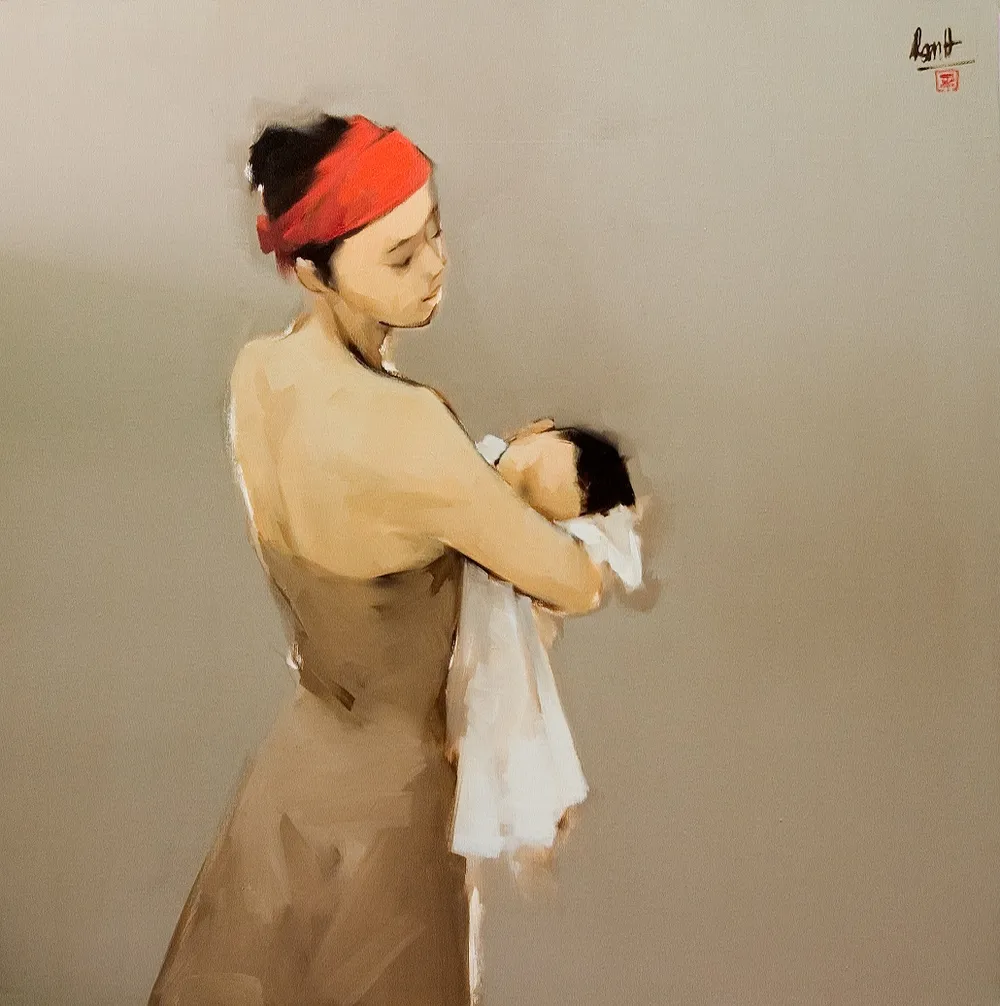 Mẹ và con là một trong những chủ đề được họa sĩ Nguyễn Thanh Bình dành nhiều tâm huyết