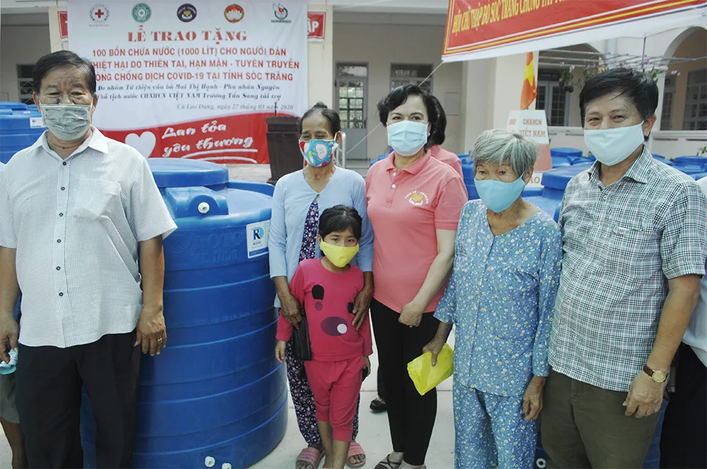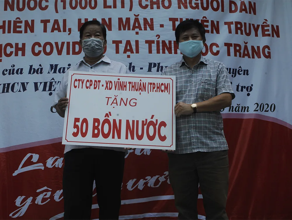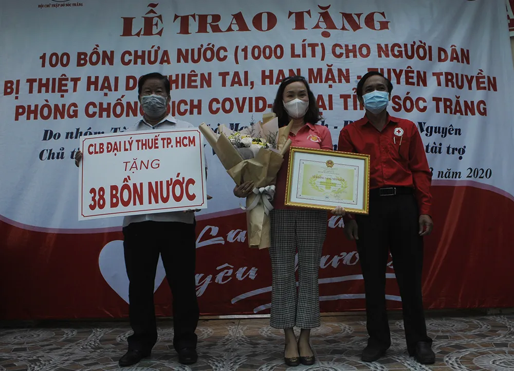 Ngày tiếp theo, đoàn đã đến trao cho các tỉnh: Bạc Liêu, Sóc Trăng, Hậu Giang với tổng 304 bồn.