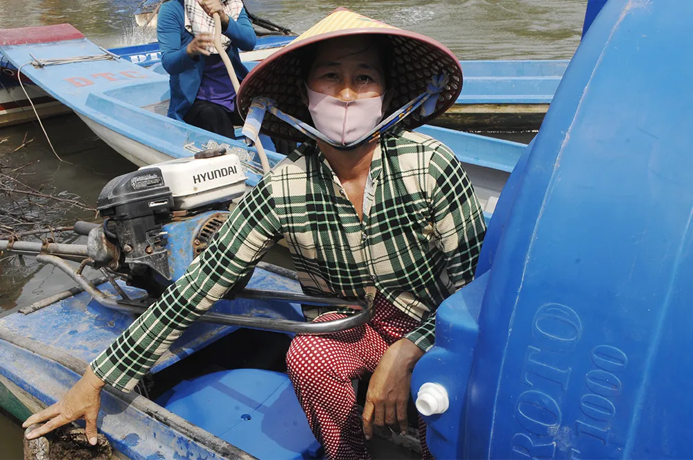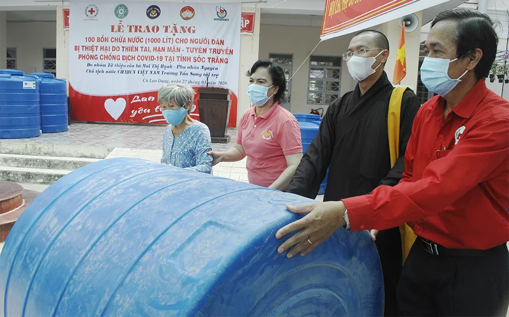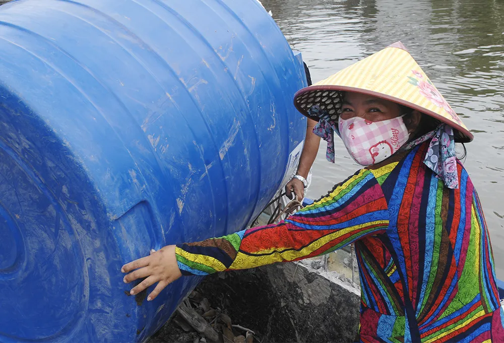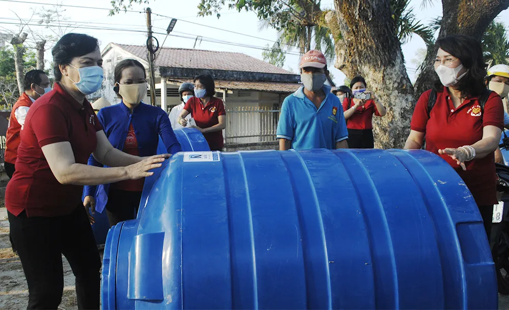 Trao bồn chứa nước ngọt tại Cù Lao Dung (tỉnh Sóc Trăng). Ảnh: TÍN HUY