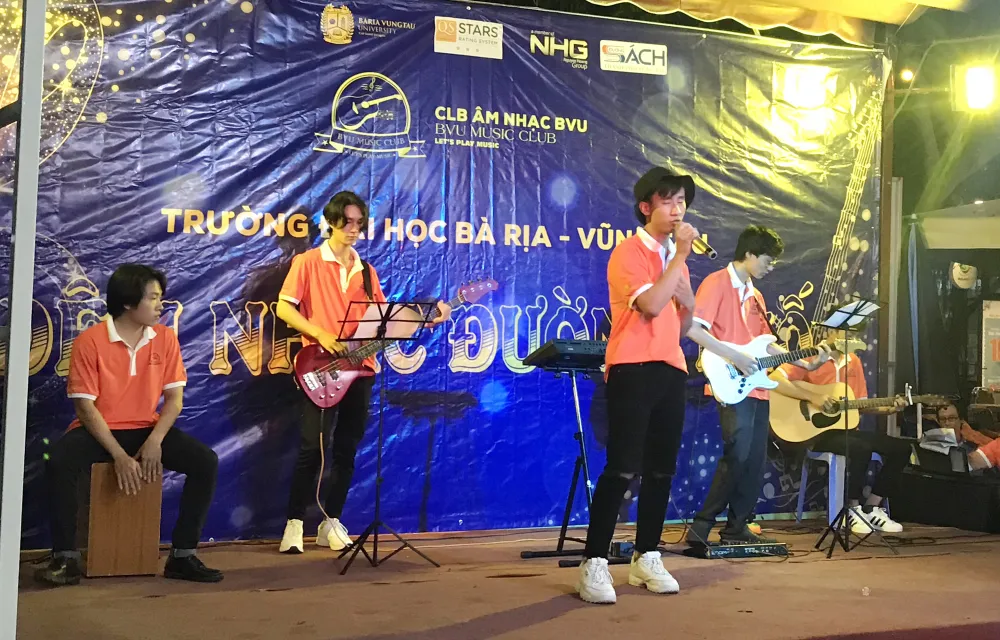 Dù 20 giờ chương trình mới bắt đầu, nhưng từ 19 giờ 30 khi sân khấu được sáng đèn cũng là lúc các bạn trẻ của BVU bộc lộ tài năng về âm nhạc. Với 1 keyboard, 1 guitar thùng, 1 guitar bass, 1 guitar lead, 1 trống cajon, band nhạc đã mang thật nhiều màu sắc qua phần hòa tấu và đệm hát cho các thành viên vocal. Không gò bó trong các các thể loại nhạc, thành viên CLB đã liên tục thu hút nhiều lượt khách du lịch và người dân Vũng Tàu đến tham quan, theo dõi với các thể loại nhạc Việt Nam và quốc tế.