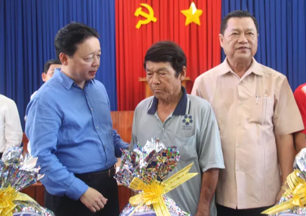 Bộ trưởng Trần Hồng Hà thăm hỏi, tặng quà cho người dân bị ảnh hưởng bởi sạt lở ở xã Mỹ Hội Đông, huyện Chợ Mới, tỉnh An Giang