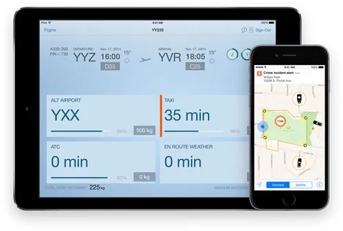 • Plan Flight (Kế hoạch bay - Ứng dụng dành cho ngành vận tải và du lịch) giải quyết vấn đề đau đầu về chi phí của tất cả các hãng hàng không là vấn đề nhiên liệu, vì cho phép các phi công xem trước lịch trình bay, lịch bay theo mùa, danh sách tổ bay, báo cáo kịp thời các vấn đề trong chuyến bay với mặt đất, và đưa ra các quyết định về tiết kiệm hay bổ sung nhiên liệu dựa trên các công nghệ phân tích thông tin.