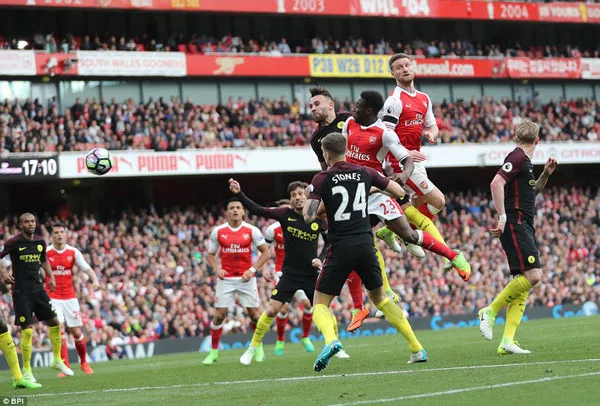 (SGGPO).- Đêm 2-4 (theo giờ Việt Nam), tại vòng 30 - Giải Ngoại hạng Anh 2017, trên sân nhà Emirates, Arsenal nhọc nhằn rượt đuổi tỷ số với Manchester City để có được kết quả hòa 2 - 2.