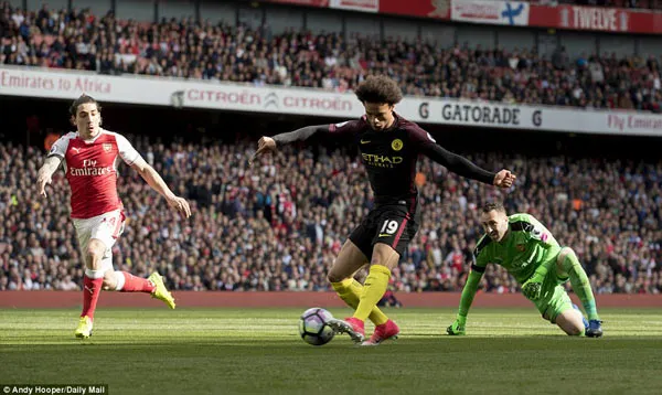 Man.City của Josep Guardiola nhập cuộc đầy hưng phấn và sớm có bàn mở tỷ số ngay ở phút thứ 5. Từ đường phản công nhanh ở phần sân nhà, tiền vệ Leroy Sane phá bẫy việt vị, trước khi vượt qua cả thủ thành David Ospina để nhẹ nhàng đưa bóng vào lưới trống.