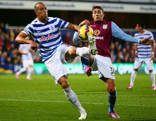 Bobby Zamora (trái, QPR) tranh bóng với Matthew Lowton (Aston Villa)