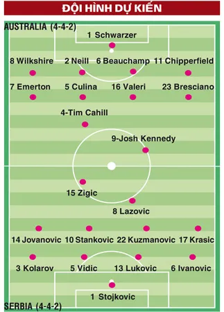Vậy nhưng, HLV Radomir Antic sẽ không có nhiều thay đổi trong thế trận quyết thắng trước Australia. Sự trở lại của trung vệ Aleksandar Lukovic sau 1 trận treo giò là tin vui duy nhất mà ông nhận được. Serbia đang đứng trước cơ hội lịch sử lần đầu tiên giành quyền vào vòng 2, kể từ khi họ tách khỏi Nam Tư cũ tan rã sau World Cup 1998. Kỳ giải tại Đức 4 năm trước, họ tham dự với sự kết hợp Serbia và Montenegro, kết quả phải ra về ngay từ vòng bảng sau 3 trận toàn thua.