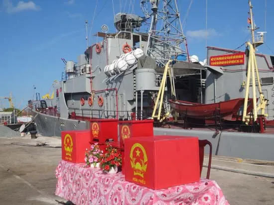 Từ cầu cảng, Bộ Tư lệnh Vùng 2 Hải quân sẽ khởi hành làm nhiệm vụ tổ chức bầu cử sớm cho các lực lượng đang làm nhiệm vụ trên thềm lục địa phía Nam của Tổ quốc và bà con ngư dân đang đánh bắt trên biển.