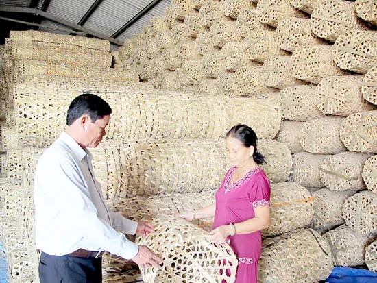 Chị Ba Huýnh kiểm tra chất lượng sọt tre xuất khẩu