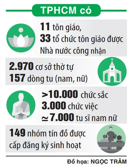 Ông Nguyễn Hoàng Giang, Phó Trưởng Ban Tôn giáo (Sở Nội vụ TPHCM), cho biết, những năm qua, với chủ trương đảm bảo quyền tự do tín ngưỡng, tôn giáo, tạo điều kiện để các tổ chức, cá nhân tôn giáo có môi trường hoạt động tốt, TPHCM đã hỗ trợ các tổ chức tôn giáo tổ chức thành công đại hội theo nhiệm kỳ, bầu ra chức sắc lãnh đạo là những người ưu tú để lãnh đạo tinh thần, dẫn dắt giáo hội đồng hành cùng Đảng bộ, chính quyền thành phố trong mọi hoạt động. Bên cạnh đó, vào các dịp lễ trọng (như Đại lễ Phật đản, Vu Lan của Phật giáo; Phục sinh, Lễ Giáng sinh của Khối Kitô giáo), thành phố luôn quan tâm, hỗ trợ để các tổ chức tôn giáo hoạt động; lãnh đạo TPHCM và các quận, huyện tổ chức gặp gỡ chung các tôn giáo hay đến thăm, chúc mừng các cá nhân, tổ chức tôn giáo tiêu biểu.