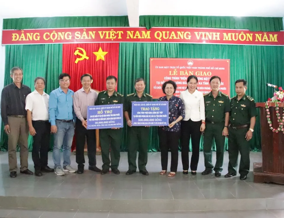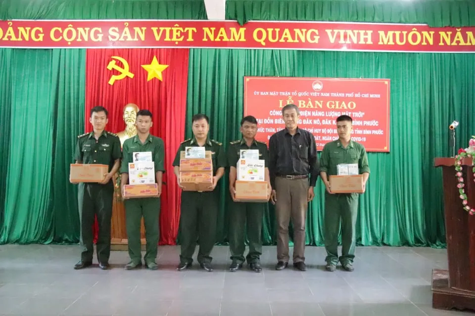 Dịp này, đoàn đã bàn giao công trình điện năng lượng mặt trời cho Đồn Biên phòng Đắk Nô và Đắk Ka, phục vụ đời sống sinh hoạt và thực hiện nhiệm vụ của cán bộ, chiến sĩ trên các chốt trạm kiểm soát biên giới. Công trình trị giá 500 triệu đồng được trích từ Quỹ “Vì biển đảo quê hương - Vì tuyến đầu Tổ quốc” TPHCM.