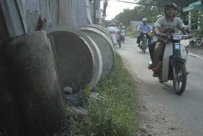 Trước địa chỉ 161 đường Chiến Lược (phường Bình Trị Đông, quận Bình Tân, TPHCM), có nhiều ống cống nằm chỏng chơ cạnh đường đi, choán hết vỉa hè (ảnh), làm mất mỹ quan đô thị và có nguy cơ lăn xuống đường, gây nguy hiểm cho người chạy xe trên đường.