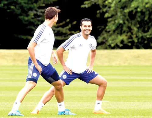 Pedro (phải) có buổi tập đầu tiên cùng các đồng đội tại Chelsea.